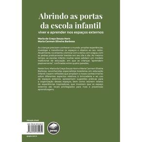 Neste livro amplamente ilustrado, também disponível no formato e-book, Maria da Graça Souza Horn e Maria Carmen Silveira Barbosa, reconhecidas especialistas brasileiras em educação infantil, trazem reflexões que ampliam o nosso conhecimento sobre diferentes aspectos relativos à brincadeira e ao uso de espaços externos, apresentam sugestões práticas para a organização desses espaços, bem como reúnem relatos de experiências inspiradoras, que mostram que os espaço externos são locais privilegiados para ricas e prazerosas