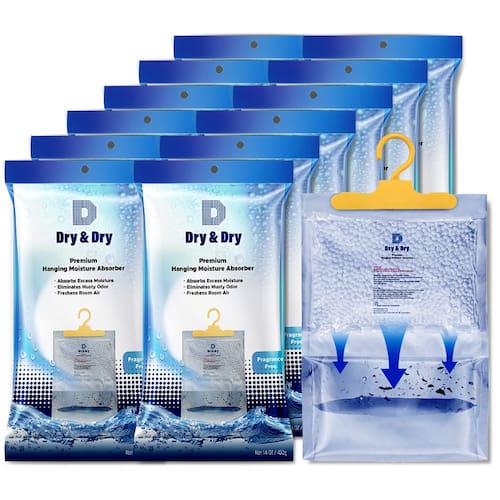 Instrução 1. Abra a embalagem logo antes do uso. 2. Use o gancho para pendurar o absorvedor de umidade e deixar espaço suficiente para a circulação do ar. 3. Os cristais brancos absorvem a umidade do ar e se transformam em água e se acumulam na parte inferior da bolsa. 4. Quando os cristais desaparecerem completamente, é hora de substituir o absorvedor de umidade suspenso. 5. Descarte a sacola inteira no lixo enquanto segura a sacola na posição vertical. 6. Cuidado: Evite o contato direto com os olhos ou com a pele. Não coma. Mantenha fora do alcance de crianças e animais de estimação. Nota: É comum encontrar pós de cristal na bolsa inferior após a abertura. - Projetado para uso em armários, porões, cabines, banheiros, garagens, lavanderias e outros espaços fechados. Absorvedores de umidade - Refresca o ar ambiente eliminando o odor de mofo causado pelo excesso de umidade. Protege roupas e itens dos danos causados pelo excesso de umidade. Absorvedores de umidade - Não seca o ar a ponto de causar danos a plantas, móveis ou utensílios domésticos. Não emite nenhum gás ou fumaça tóxica. Absorvedores de umidade - duram até 60 dias (a duração varia dependendo da temperatura e umidade) - Testemunhe a eficácia, pois a umidade absorvida se acumula na parte inferior da bolsa. Absorvedores de umidade - 16 pacotes [líquido de 7 onças/pacote] - Cada absorvedor é armazenado em cada saco para facilitar o uso e armazenamento a longo prazo. Ingredientes ativos: Cloreto de cálcio. Absorvedores de umidade - [Informações de garantia] Nossos produtos são suportados com nova substituição ou reembolso total, sem limite de tempo, se não funcionarem.