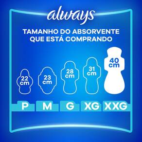 Absorvente Always Noites Tranquilas Suave com Abas Tamanho XXG Dependendo da intensidade do seu fluxo existe um absorvente ideal para ele. Quer Absorvente para fluxo hiper abundante? Sinta-se limpa e