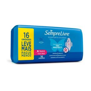 Absorvente Externo Sempre Livre Adapt Plus Suave com 16 Unidades Sempre Livre® Conforto Diurno é um absorvente higiênico que garante até 8 horas de proteção contra vazamentos para fluxos moderados.