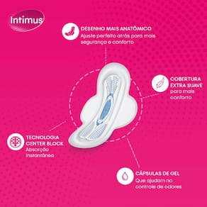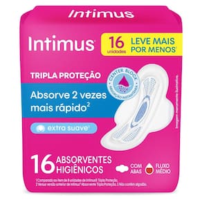 O Absorvente Intimus Tripla Proteção Suave Com Abas 16un pode te ajudar a deixar a sua zona íntima mais seca e protegida! O Absorvente Tripla Proteção conta com Center Block, ajudando na absorção instantânea do seu fluxo. Sem contar que ainda absorve 2 vezes mais rápido e distribui por todo absorvente, prevenindo vazamentos. Perfeito para que você se sinta seca enquanto usa. E aí? Que tal conferir e comprovar? O Absorvente Intimus Tripla Proteção tem controle de odores, é dermatologicamente testado e tem 100% de materiais respiráveis.