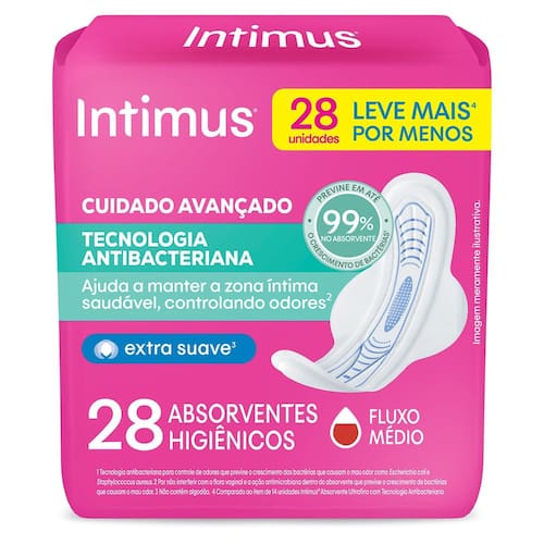 Absorvente Intimus Toda Renovada Dia - 28 unidades O Absorvente Intimus® Toda Renovada Dia promove a sensação de frescor e limpeza prolongada, com microesferas que neutralizam odores e até 100% de pro Ean: 7896007551026