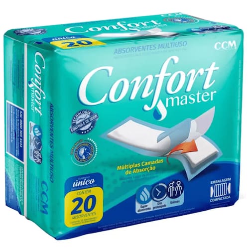 O absorvente Confort Master é um produto de higiene pessoal que oferece uma proteção eficaz para homens e mulheres durante a menstruação ou em situações de incontinência urinária. Cada pacote contém 20 unidades do produto.
