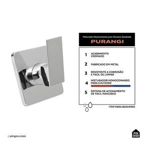 Conteúdo da embalagem: 1 Misturador Monocomando para Chuveiro Quadrado Purangi