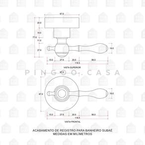 O Acabamento De Registro Para Banheiro Subaé pode ser utilizado tanto para registro de pressão quanto para registro de gaveta, proporcionando um manuseio mais prático, o sistema de abertura da água funcionara de acordo com o mecanismo do seu registro padrão 16 estrias.