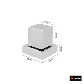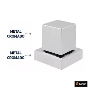 Cor: Cromado; Material do cubo: Metal; Material da canopla: Metal; Acabamento: Cromado Brilhoso; Medidas da base: 54mm x 54mm; Medidas do acionador: 38mm x 38mm;