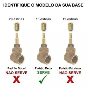 Compatível com Registro Deca ou similares que utilizam a mesma estria Compatível com Registros de bitolas: 1/2" , 3/4" e 1'' polegada Compatível com Registros de pressão e gaveta