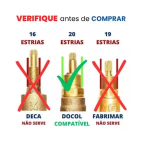 Compatível com Registro Docol ou similares que sejam 20 estrias