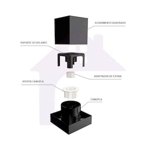 Acompanha o Produto: 04 Volante Quadrado em abs (Manopla). 04 Canopla Quadrada em abs (Base). 04 Aperta canopla. 04 Parafuso Instalação
