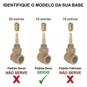 Descrição Técnica: Material: Metal Cor: Rose-Gold Acabamento: Brilhante Marcas compatíveis: Deca, Admo, Oriente, Stoc, Forusi, Meber, Furkin e outras que seguem o mesmo padrão Deca. Marcas não compatíveis: Docol, Fabrimar, Lorenzetti e outras que não seguem o padrão Deca.