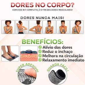 Acalme-se: Kit Tapete e Mini Massageador Borboleta EMS para Dor Muscular nos Pés Kit Tapete Massageador E Mini Massageador Elétrico é a solução perfeita para quem busca conforto e alívio de dores musculares no final do dia. Com sua tecnologia de estimulação elétrica, ele atua nos pontos de acupuntura, promovendo uma sensação de relaxamento e aliviando aquele frequente peso das pernas ao final. Além disso, ele ainda estimula a circulação e combate dores musculares, oferecendo 8 modalidades de estimulação e 19 intensidades diferentes para atender às suas necessidades.