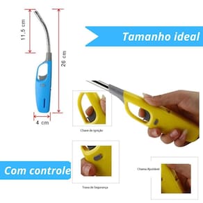 Acendedor flexível recarregável fogão churrasqueira lareira Descrição do anúncio: Transforme seus momentos especiais com o nosso acendedor a gás multiuso ideal para acender fogões, lareiras, velas ou churrasqueiras, este acendedor combina eficiência, versatilidade e segurança em um só produto. Diga adeus aos fósforos e isqueiros tradicionais e descubra a praticidade com apenas um clique Conteúdo da embalagem: 01 acendedor a gás com bico flexível e recarregável Características: Bico flexível: alcança áreas de difícil acesso. Gatilho de ignição: acendimento rápido e eficiente. Fecho de segurança: protege contra uso não autorizado e acidentes. Regulador de chama: ajuste a intensidade da chama conforme necessário. Acendedor recarregável: economize com um acendedor que pode ser recarregado. Especificações: Composição: plástico e metal Tamanho da base até a chama: 27cm Medida do bico: 11cm Largura: 4cm Principais perguntas sobre o produto e respostas: Pergunta 1: o produto já vem com gás incluído Resposta 1: não, o produto não acompanha gás para recarga. É necessário comprar o spray de gás butano com o bico separadamente para recarregar o acendedor. Pergunta 2: qual é a cor do acendedor Resposta 2: a cor do acendedor será enviada de forma aleatória, conforme a disponibilidade em . Pergunta 3: o acendedor é seguro para crianças Resposta 3: sim, o acendedor possui um fecho de segurança para prevenir o uso não autorizado por crianças. Pergunta 4: como devo usar o acendedor Resposta 4: insira o gás butano no acendedor, ajuste o regulador de chama, e utilize o gatilho de ignição para acender. Siga as instruções de segurança e uso contidas no manual. Pergunta 5: posso usar o acendedor em ambientes externos Resposta 5: sim, o acendedor é ideal para uso em ambientes externos, como churrasqueiras e fogueiras, além de ser prático para o uso interno, como em fogões e lareiras. Marca: Não Informado
