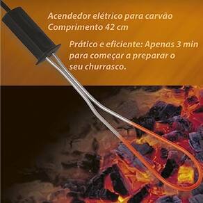 Acendedor elétrico AC 300 para churrasqueira é lareiras, vai ser muito mais fácil de acender o carvão para preparar o seu churrasco ou aproveitar em frente a lareira, basta colocar o acendedor sobre o carvão para que em pouco minutos churrasqueira ou lareira esteja pronta.