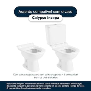 Detalhes e Cuidados Especiais: * Cor: Bege * Compatibilidade: Modelo Calypso da marca Incepa * Conteúdo da Embalagem: Assento sanitário, ferragem completa, parafusos de fixação e instruções de instalação. * Fabricante do Assento Sanitário: Pontto Lavabo (enviado na caixa conforme foto no anúncio).
