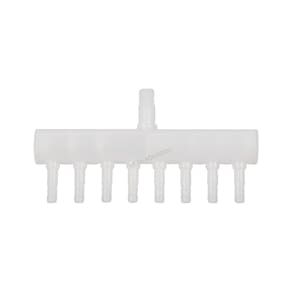 Características: Distribui o ar igualmente para 8 saídas Entrada de ar de 8mm Saídas de ar de 4mm Plástico resistente Fácil instalação