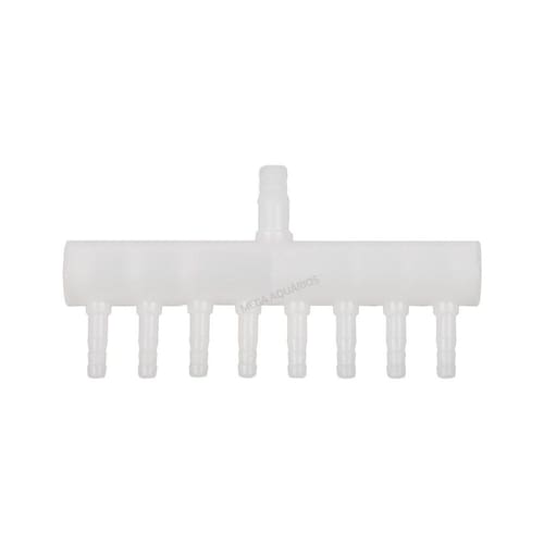 Especificações técnicas: Marca: Aquam Modelo: Divisor ar 8 saídas Entrada: 8mm Saída: 4mm Tamanho: 12,5 x 5,5 cm larg x alt Peso: 17g