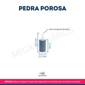 Especificações: Marca: Mega Aquários Modelo: Pedra porosa S08 25X50X4mm Material: Composto químico de silício e carbono. Conexão ponta de plástico Diâmetro: 2,5cm Altura total com a conexão: 6,5cm Peso: 34g Cor: cinza Conexão de mangueira de ar: 4mm