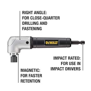 DEWALT Acessório de ângulo reto, pronto para impacto, 3,8 cm (DWARA120) - O acessório da broca de ângulo reto tem magnetismo para retenção do fixador - DEWALT O acessório de ângulo reto é projetado para uso em chaves de impacto, permitindo que os usuários perfurem ou conduzam - Projetado para uso em chaves de impacto, permitindo aos usuários perfurar ou dirigir - Possui um design erogonômico