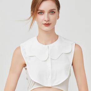Gola falsa Peter Pan branca removível, elegante gola ondulada com renda para mulheres, elegante acessório de gola de chiffon para viajar, versátil decoração de camisa meio falsa Material: chiffon Tamanho: 20 × 24 × 2 cm Peso: 100 g