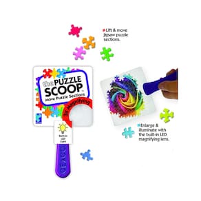 Ceaco - The Puzzle Scoop — Um acessório de quebra-cabeça que levanta, move, ilumina e amplia para todos os quebra-cabeças — Uma solução perfeita para mover as peças do quebra-cabeça! - Levante e mova as seções do quebra-cabeça. - Amplie e ilumine com a lente de aumento LED embutida. - A lente de aumento vem com três vezes a capacidade de ampliação. - Um ótimo presente para os amantes de quebra-cabeças!