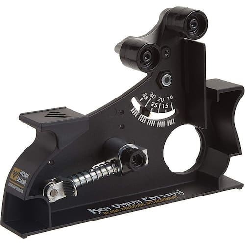 Acessório Work Sharp Blade Grinder para afiador de facas e ferramentas Ken Onion Edition MK.1 (WSSAKO81112) - Somente acessório, requer o afiador Work Sharp Ken Onion MK.1 Edition para uso. Não é compatível com o Ken Onion MK.2 - Este acessório de 4 polias é ajustável para afiar facas e ferramentas de 10 graus a 35 graus e inclui cinco (5) correias abrasivas projetadas de 1 “x 18" em uma ampla variedade de grãos - Este acessório é semelhante ao que os fabricantes de lâminas usam. Oferece uma ampla variedade de ajustes, você pode personalizar, afiar e aprimorar suas lâminas em casa - A velocidade da correia é ajustável de 1200 SFM a 2800 SFM para acomodar uma ampla variedade de tarefas de afiação e afiação - O acessório Blade Grinder fornece uma seleção completa de correias abrasivas de 1" x 18" e também aceita uma correia opcional de algodão de alta densidade para decapagem elétrica