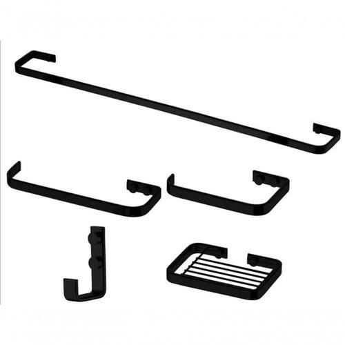 Acessorios Banheiro Lavabo 5 Peças Preto Fosco Cabides