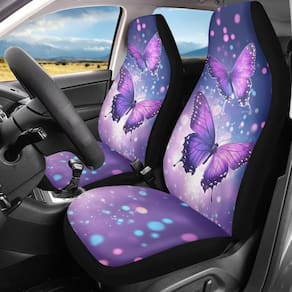 TOADDMOS Conjunto de capas de assento dianteiras femininas com brilho roxo borboletas, cobertor elástico para sela, protetores de assento de balde automotivo, interior de carro automotivo - Incluído no pacote: 2 x capas de assento concha dianteiras - Feito de tecido de microfibra de poliéster de alta qualidade - super macio, respirável, confortável, resistente ao desgaste, fácil de limpar, uso nas quatro estações - Apresenta designs inovadores e cores vibrantes, adicionam um toque de exclusividade e alegria quando você está dirigindo. Proteja seus assentos de derramamentos, manchas, rasgos, desbotamento e pelos de animais de estimação, deixe seu carro ganhar um novo visual - Projetado para instalação rápida e fácil na maioria dos carros e assentos estilo SUV Bucket - sem necessidade de ferramentas. O sistema de suporte elástico e fixação garante um ajuste universal confortável e seguro na maioria dos assentos padrão de carros e SUV - Não deve ser utilizado em assentos com airbags integrados, cintos de segurança ou apoios de braço