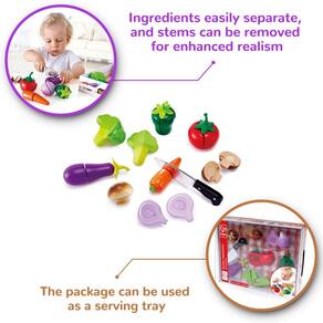 - Seguro para crianças: o conjunto de alimentos de simulação de vegetais de jardim passou por testes extensivos para garantir que sejam seguros para brincar com crianças a partir de 3 anos