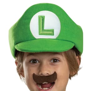 - Acessórios oficiais de fantasia infantil Luigi – Este conjunto de chapéu e bigode Luigi é o complemento perfeito para a fantasia de Luigi de qualquer criança e será um sucesso na festa