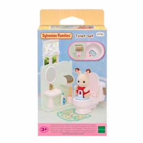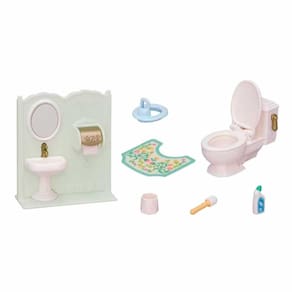 Acessórios e Móveis - Sylvanian Families - Toalete - Epoch Magia: Sylvanian Families são adoráveis personagens animais distintos com charmosas e bonitas casas, móveis e acessórios. Eles vivem, trabalham e brincam na idílica e maravilhosa terra de Sylvania. Detalhes: • O Conjunto de Toalete vem com vaso sanitário, pia, produtos de limpeza, penico e tapetinho • É possível acionar a descarga puxando a alavanca do vaso sanitário e o papel higiênico pode ser desenrolado • Os bonecos podem sentar no vaso sanitário (bonecos vendidos separadamente) • O assento do penico pode ser acoplado ao vaso sanitário para treinar os bebês para usá-lo • A pia inclui espelho, cuba e porta-papel higiênico. Há até um espaço para guardar o penico • Você pode usar o limpador e a escova para limpar o vaso sanitário Informações: • Produto: Conjunto Toalete Sylvanian Families • Marca: Epoch Magia • Coleção: Sylvanian Families • Tipo: Acessórios e Móveis de Figuras e Bonecas • Categoria: Conjuntos, Cenários e Casinhas • Conteúdo: - 01 Vaso sanitário - 01 Pia - 01 Assento de penico - 01 Escova para vaso sanitário - 01 Porta-escovas - 01 Limpador de vaso sanitário, - 01 Tapete • Recomendação: para crianças a partir de 03 anos de idade Especificações: • Referência: 5740 • Código de Barras: 5054131057407 • Embalagem (C x A x L): 11 x 12.8 x 06 cm • Embalagem (Peso): 0.082 kg • Material / Composição: Plástico e Tecido • Registro: 004530/2019 • Certificado: Órgãos Autorizados - OCP´S (Organismos de Certificação de Produtos) Aviso: • As imagens são meramente ilustrativas • Os pesos, tamanhos e medidas são aproximados • As cores e estampas dos produtos podem ter variações • As informações são de responsabilidade do fabricante ou fornecedor