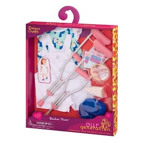 Cuide muito bem de suas bonecas de 46cm com o conjunto Our Generation “Pronto para Recuperação”! Cada acessório ajuda suas melhores amigas a se recuperarem, um passo de cada vez. Use a perna engessada e a gola rosa para dar às suas bonecas uma recuperação rápida. Eles cabem facilmente em todas as bonecas Our Generation, para que você possa cuidar especialmente de todos as suas amigas, independentemente da lesão! Traga suas bonecas pela vizinhança com as muletas envolvendo as alças em seus braços e use o rolo de fita adesiva para proteger o tornozelo de outras pequenas lesões! Os tapa-olhos aderem facilmente ao redor dos olhos de sua boneca quando ela precisa de descanso extra, e você pode retirar os curativos da folha de adesivos quando ela notar pequenos arranhões. Suas melhores amigas ficarão melhores em pouco tempo!
