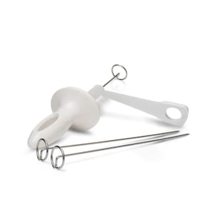 Informações técnicas 01 Forma para assar: ø16,4 x 6 cm 01 Grelha: ø16,4 x 7 cm 03 Espetos: 2,5 x 16 cm 01 Fatiador de vegetais em espiral: 3,5 x 11 cm