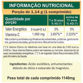A Vitamina C da Unilife Vitamins é um suplemento alimentar formulado com 1000 mg de ácido ascórbico por comprimido, desenvolvido para complementar a ingestão diária dessa vitamina essencial ao organismo. Livre de glúten. - Modo de ingestão Sugere-se a ingestão de 1 cápsula ao dia, antes da refeição. Ingerir com líquido.