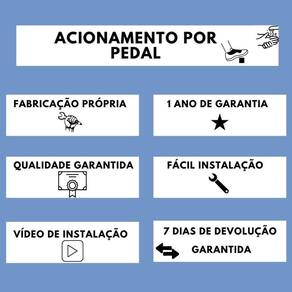 Pedal em aço inox escovado. 1 ano de , excelente durabilidade Informações técnicas: Dimensões da válvula 5,5cm x 7cm ; Pedal acionador em inox 12cm x 7cm x 3cm ; Cabo do acionador com 90cm; Entrada de água 1/2 macho e saída de água 1/2 fêmea ; Pressão de operação: vazão mínima de 7l/min com 0,2kgf/cm, vazão máxima de 40l/min com 8,0kgf/cm; Vida útil: mais de 800.000 acionamentos; Pedal: inox 304; Conduíte: inox 304; Cabo dentro do conduíte: inox 304; Válvula: latão. Temperatura máxima suportada: 60ºc Acionador de pedal para torneira. Pedal com instalação mais simples do mercado. Para acionar, basta pressionar com o pé sobre o pedal. Ao retirar o pé, o acionamento é interrompido. Evita a contaminação cruzada, principalmente o conoravírus 19 e a transmissão de doenças em ambientes hospitalares ou de saúde como clínicas médicas, clínicas odontológicas, centros cirúrgicos ou postos de saúde. Uso indicado para ambientes onde não é permitido o contato manual como restaurantes, consultórios, clínicas, hospitais e laboratórios. Em escolas ou refeitórios onde são servidas inúmeras refeições, uma torneira com acionamento pelo pé facilita o trabalho de quem prepara as refeições e também de quem limpa a cozinha. A preocupação com a higiene, com a saúde e com o meio ambiente são assuntos cada vez mais em evidência. Não usa energia elétrica, portanto, não há riscos de você ficar sem a torneira caso o serviço de eletricidade seja interrompido por algum motivo. O acionador de pedal mecânico evita o contato das mãos nas torneiras, evitando assim riscos de contaminação pois as válvulas são grandes transmissoras de vírus e bactérias. Esse modelo possui muitas vantagens, entre elas, impede a transmissão de doenças ao evitar a contaminação cruzada pelo contato com as mãos. Afinal, o acionamento é feito pelo pé. As mãos de quem utiliza a torneira ficam livres, facilitando o trabalho em diversos ambientes. Mais higiene, pois evita contato manual e contaminação cruzada. Proporciona economia de até 70% de água. Com a utilização de um acionador de pedal mecânico de torneira, as mãos de quem utiliza a torneira estão livres, facilitando o trabalho de quem usa a pia para lavar a mão, a louça e outros utensílios. Fabricante h2tec. Fácil instalação. Não acompanha bica. Fabricado em aço inox 304, resistente, não enferruja e não requer energia elétrica. Fácil para acionar. Altura do pedal mecânico é ergonômica, evita desconfortos na utilização no dia a dia. De fácil instalação e não precisa quebrar o chão. Você poderá utilizar a mesma torneira que já está no local, apenas retirando o dispositivo de dentro da torneira, assim ela será apenas passagem para a água. Com a válvula em latão, sua resistência e durabilidade são altas, com mais de 600.000 acionamentos. É um produto modular e, quando for necessário fazer sua manutenção, você trocará apenas o módulo com defeitos. É um produto 100% nacional, desenvolvido e produzido aqui no brasil. Valorize os produtos nacionais.