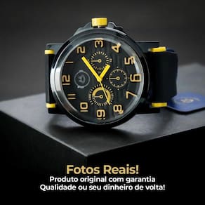Seu elegante tom preto, combinado com detalhes em amarelo, adiciona um toque vibrante de personalidade, garantindo que você se destaque em qualquer ocasião. Além disso, sua pulseira de borracha ajustável proporciona não apenas conforto, mas também versatilidade, tornando-o apto para uso em eventos casuais ou formais.