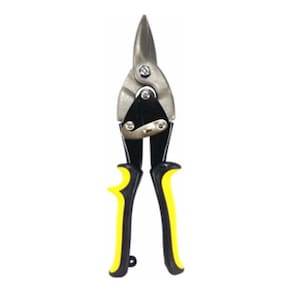 Tesoura corta chapa reto 10 - 25cm fertak tools profissional na cor preta com amarela, feita em aço forjado, cabo emborrachado e resistente, com afiação especial, corta chapas de aço laminado de até 1,2mm e aço inoxidável de até 0,7mm, compre e garanta agora mesmo a sua