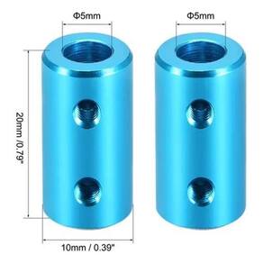 Material: alumínio Diâmetros internos: 5mm em ambas as extremidades Total de comprimento: 20mm 0.79 polegadas Diâmetro externo: 10mm 0.39 polegadas Tipo de rosca: m3 Cor: azul claro