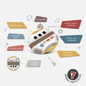 Botões de Controle de Tom : O controle de efeitos sonoros torna a experiência musical mais rica e estimula o desenvolvimento cognitivo.