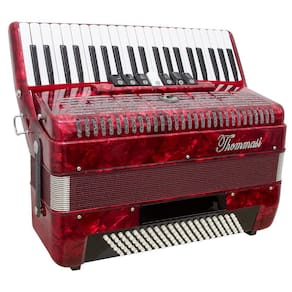 - Marca: Thommasi - Modelo: TA-12009 - Tipo: Piano - Cor: Vermelho - Baixos: 120, 2 registros - Teclado: 41 Teclas, 7 Registros - Acompanha Bag e Correias