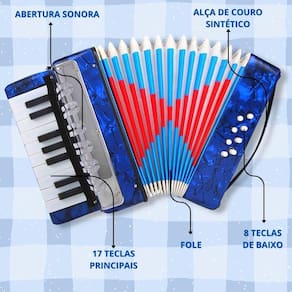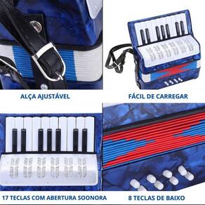 Acordeon Sanfona Infantil 8 Baixos 17 Teclas - Azul