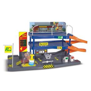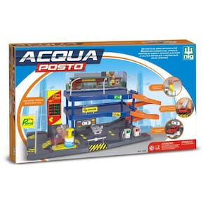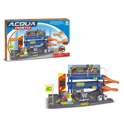 Auto posto 2 andares, com bomba de gasolina, rampa para troca de óleo, área de conveniência e lava rápido que funciona de verdade. Diversão para garotada! Obs: Não contém carrinhos.
