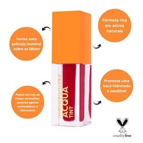 O Acqua Tint possui todos os benefícios de um cuidado labial formando uma película invisível sobre os lábios. Fórmula rica em ativos naturais, possui extrato de frutas vermelhas, potente agente antioxidante e hidratante, além do pantenol e extrato de aloe vera, que promovem uma boca hidratada e saudável.