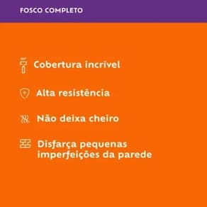 Você sabia que essa tinta fosca possui tecnologia antirrespingo? Moderna e atualizada, ela faz menos sujeira. Assim, você não tem incômodos após a pintura. Outra vantagem do produto é que ele não deixa cheiro em até três horas depois da aplicação.