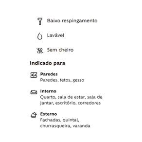 A Suvinil Fosco Completo pode ser diluída com 20% de água potável tanto na primeira pintura quanto na repintura, e pode ser usada nas seguintes superfícies: paredes de alvenaria com massa corrida, massa acrílica, gesso, drywall, concreto, blocos de concreto, fibrocimento, texturas e reboco, sempre seguindo as instruções e dicas na embalagem do produto.