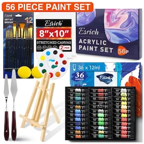 RICH PACOTE O conjunto tem 24 PCS , 12 tamanhos de escovas de nylon, 36 tubos de cores 12ml, 0,4 oz tinta acrílica, 10 PCS 8,5 × 11,5 polegadas almofadas de pintura, uma paleta de plástico, 2 PCS facas de tinta, 2 PCS art esponjas e uma caixa de presente
