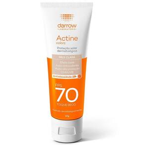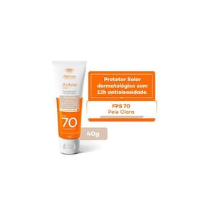 Protetor solar facial FPS 70 com cor (pele clara). Para peles oleosas e acneicas. Textura fluida e toque seco, não provoca acne. Proporciona efeito base. 12h de controle da oleosidade.