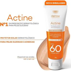 O que é e para que serve o Actine FPS 60 Cor Universal? Actine FPS 60 Cor Universal é um filtro solar que oferece muita alta proteção contra os raios UVA e UVB, e até 10h de controle eficaz da oleosidade.