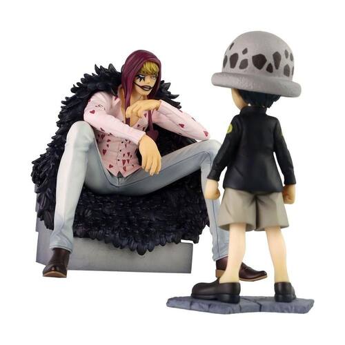 Lá ele conheceu o líder dos Piratas Donquixote, Corazon. A figura captura o vínculo único entre os dois personagens em uma cena memorável que parece pronta para ganhar vida.