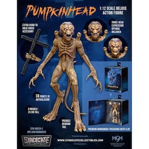 REVIVA UM CONTO DE FADAS SOMBRIO Descubra o terror do exclusivo boneco de ação premium Pumpkinhead em escala 1:12 da Syndicate Collectibles. Renderizada com uma precisão assustadora, esta figura meticulosamente trabalhada foi feita usando digitalizações digitais do Pumpkinhead autêntico do clássico cult de terror de 1988. Desenvolvido por meio de um esforço colaborativo com o ator Pumpkinhead e artista SPFX Tom Woodruff Jr. para garantir a máxima autenticidade. UMA DAS CRIATURAS MAIS INESQUECÍVEIS DO TERROR. Totalmente posável, esta figura personifica o espírito vingativo de Pumpkinhead com 38 pontos de articulação. Recrie cada momento grotesco usando as três esculturas de cabeça intercambiáveis e a mão alternativa, feitas especialmente para segurar o acessório cruzado incluído para uma aparência completa. Cada elemento cuidadosamente projetado, da escultura realista à impressionante articulação, captura a intensidade brutal da criatura demoníaca como nunca antes. Preste homenagem ao impacto duradouro da criação monstruosa do diretor Stan Winston com este colecionável Pumpkinhead oficialmente licenciado. Este exclusivo da San Diego Comic-Con 2024 é uma edição limitada de apenas 250 peças, completa com um certificado assinado por Tom Woodruff Jr.