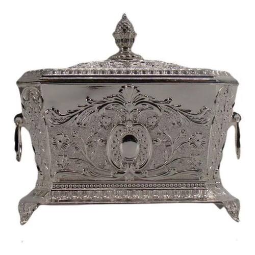 Açucareiro Acabamento Fino Em Metal Indiano 17 X 15 Açucareiro de Metal com acabamento fino 17x15 Luxuoso açucareiro fabricado em metal. Peça super resistente e de excelente qualidade garantindo sempre um alimento mais saudável. Seu design moderno, de acabamento brilhante, traduz praticidade e requinte para o seu dia a dia. Um toque de charme em sua mesa. Medidas: Altura total: 15 cm Comprimento: 17 cm Largura: 12 cmMaterial: MetalCor: Prata Produto importado REF: Q1991